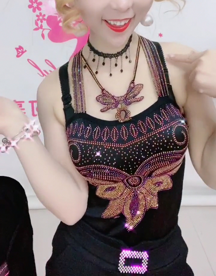 Net red new fashion diamond-encrusted thickened vest sling female with chest pad butterfly beautiful back wear elastic inner underwear