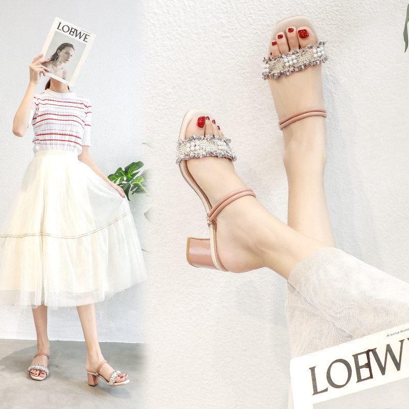 Summer sandals women's 2022 new summer all-match soft bottom middle heels thick heels high heels fairy wind two-wear sandals and slippers
