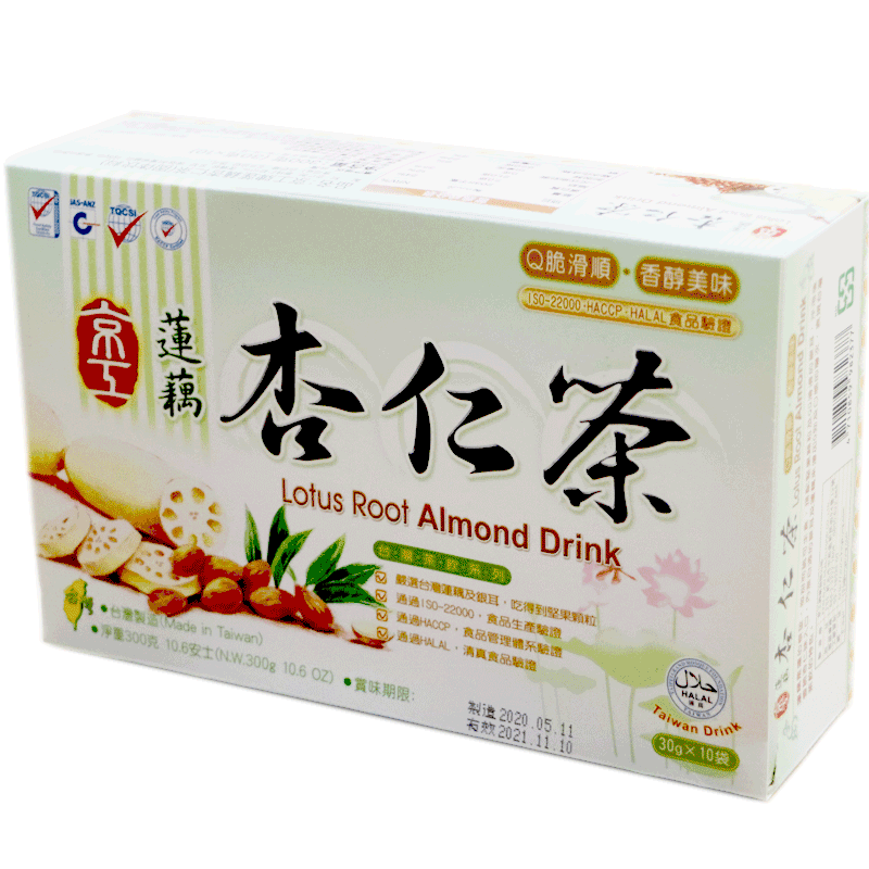 New goods 100-25 China Taiwan Jinggong lotus root almond tea 30g * 10 into 3 boxes better containing almond granules