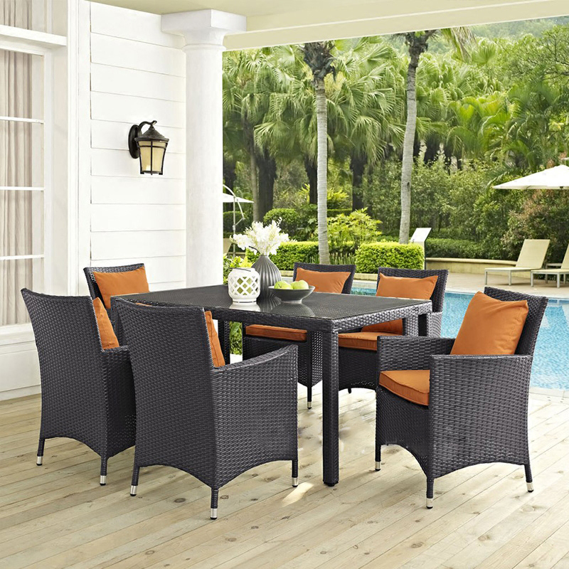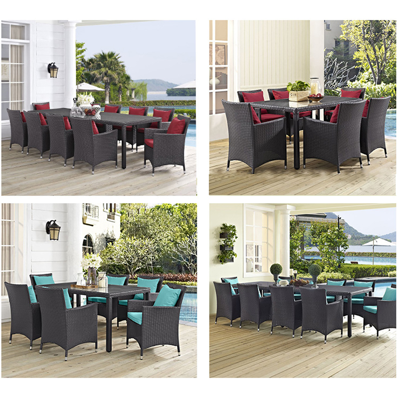 Chairs One table and ten chairs (two tables combined) One table and six chairs One table and six chairs with cushions and pillows One table and ten chairs (two tables combined) with cushions and pillows