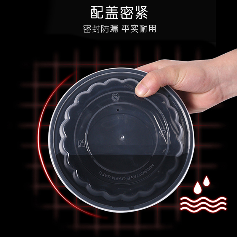 1000ml disposable round American octagonal lunch box Nine corners Black delivery packing box Fast food box Lunch box soup bowl