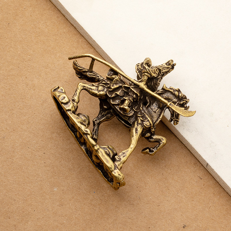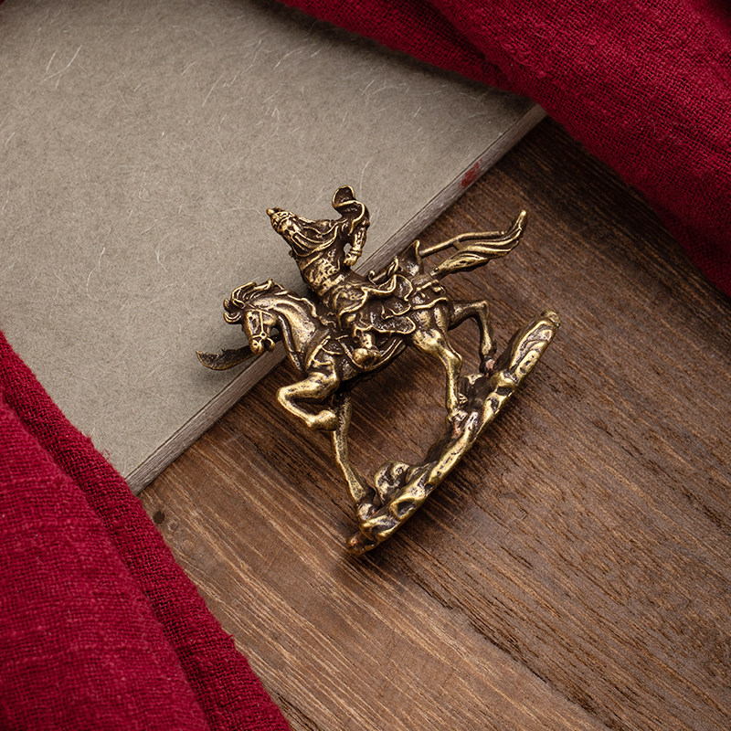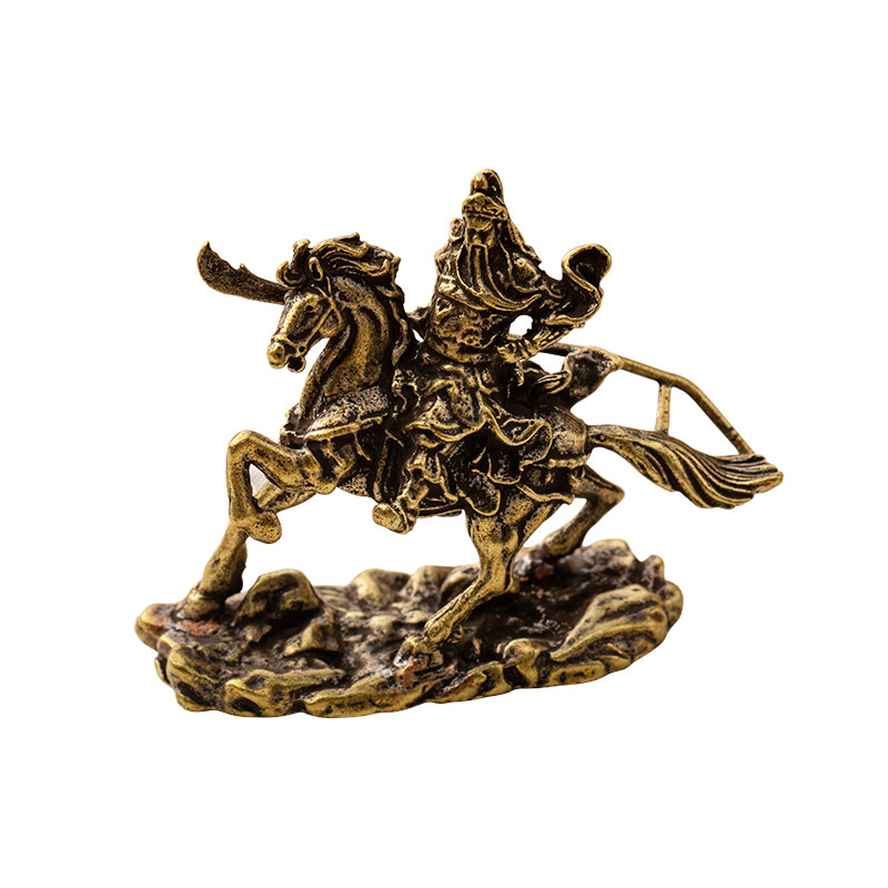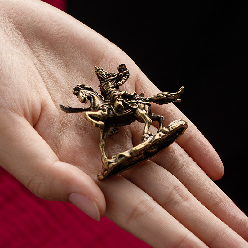 Brass horse riding Guan Gong small ornaments brass like Wusheng God of wealth antique small bronze office coffee table car interior