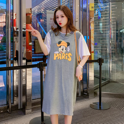 Maternity dress summer 2022 fashion top mid-length t-shirt skirt loose large size casual summer skirt tide
