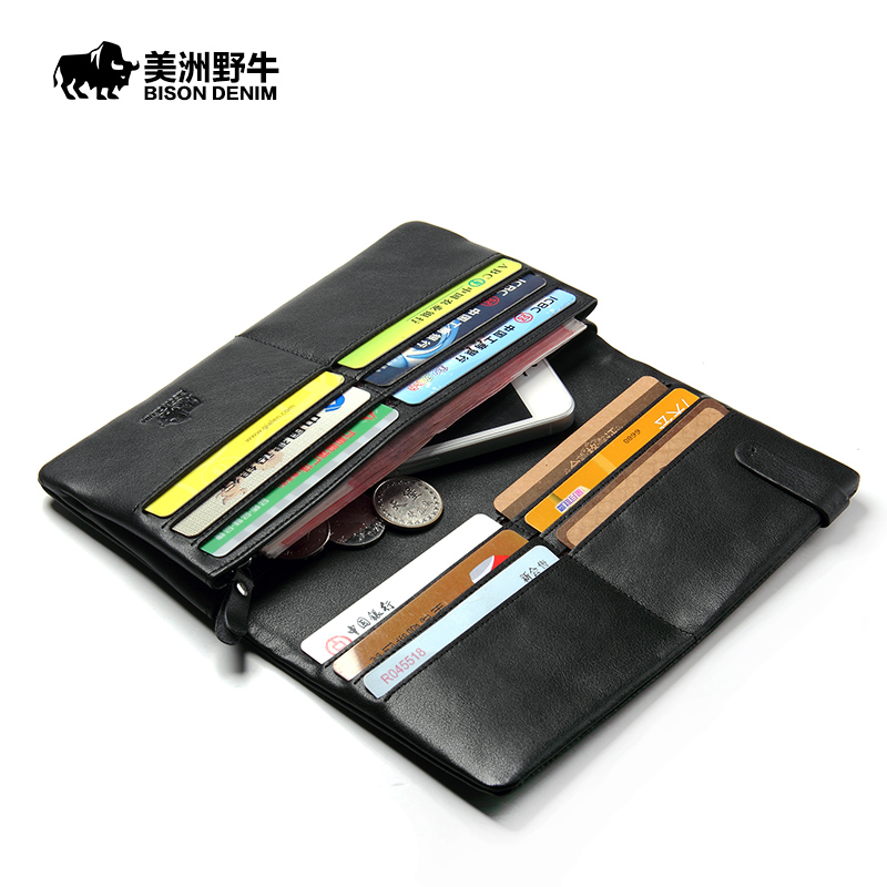 Americas Bison Wallets REAL LEATHER LONG VERSION HEAD LAYER BULL LEATHER BUSINESS PULL CHAIN FASHION THEFT PROTECTION BRUSH MONEY CLIP LEATHER CLIP TIDE CARD
