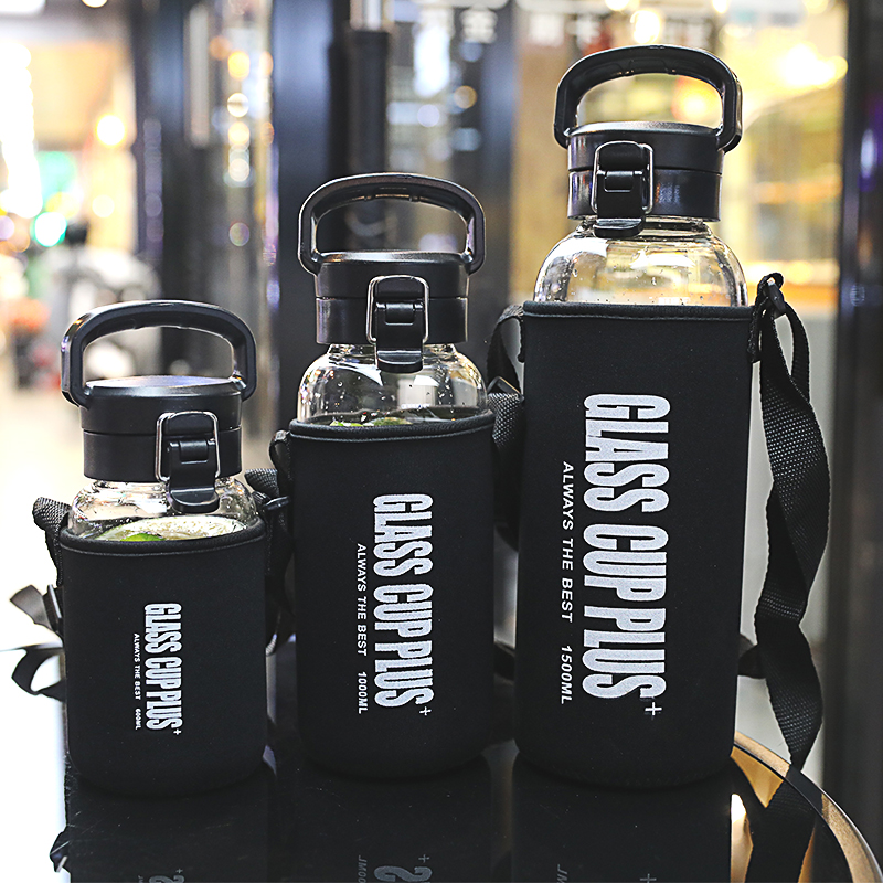 Hunting director Korean large-capacity glass water cup for men and women heat-resistant transparent tea cup 1000ml cup set portable cup