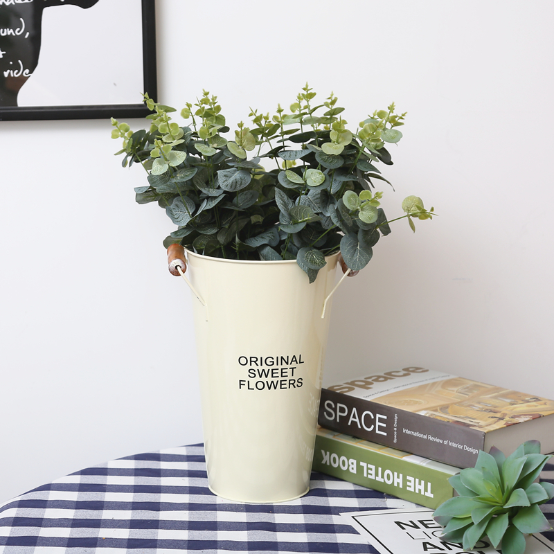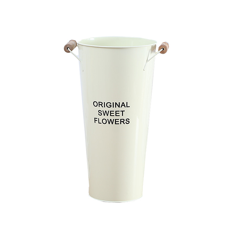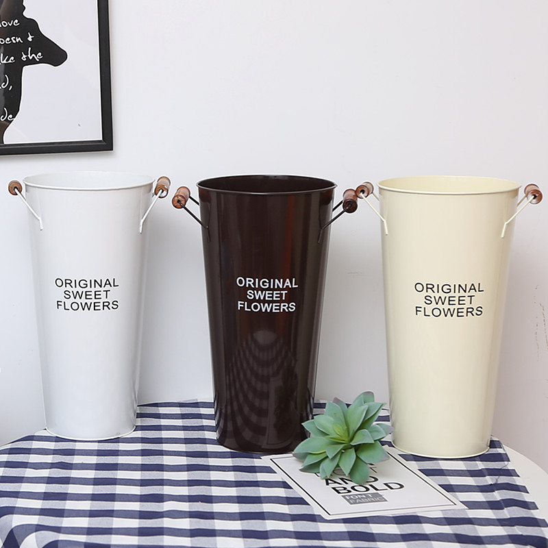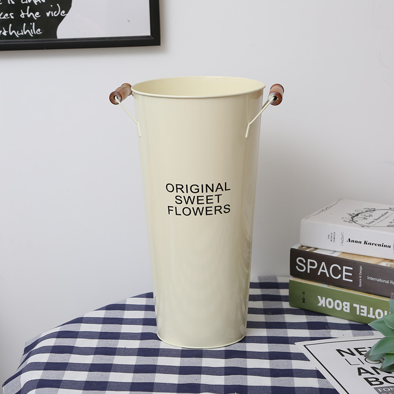 Beige wooden handle tin flower bucket simple creative flower shop flower bucket rose lily home floor wake up flower bucket