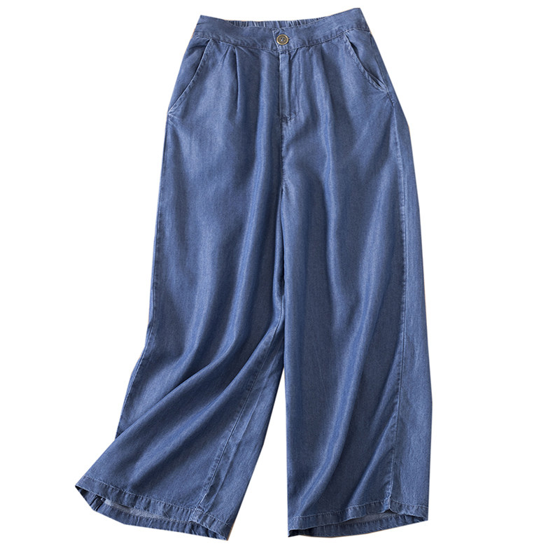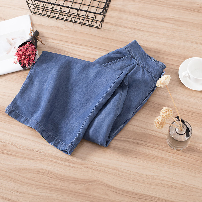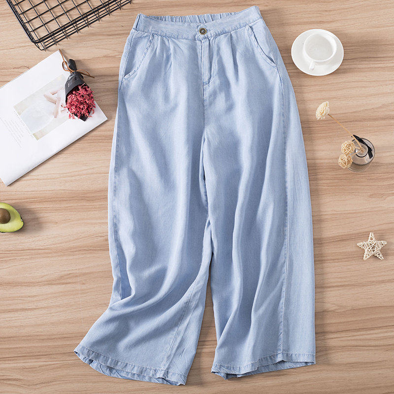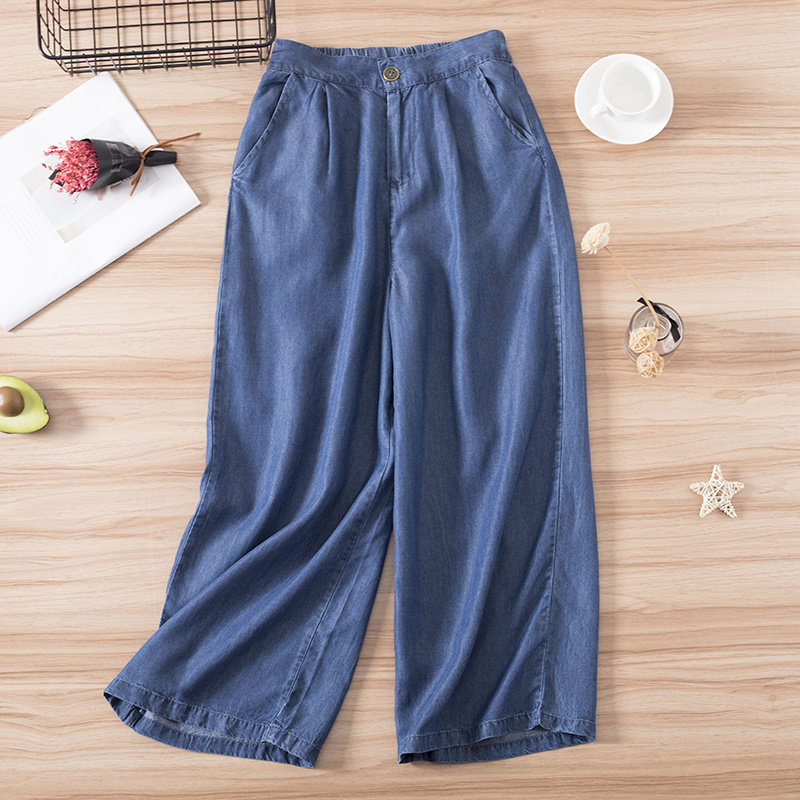 Tencel Jeans Women's Summer Thin Pants Korean Fan Loose High Waist Thin Elastic Waist Straight Pants Wide Leg Pants