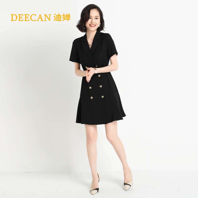 DEECAN high-end female president professional dress female 2020 summer goddess fan overalls small black dress tooling new