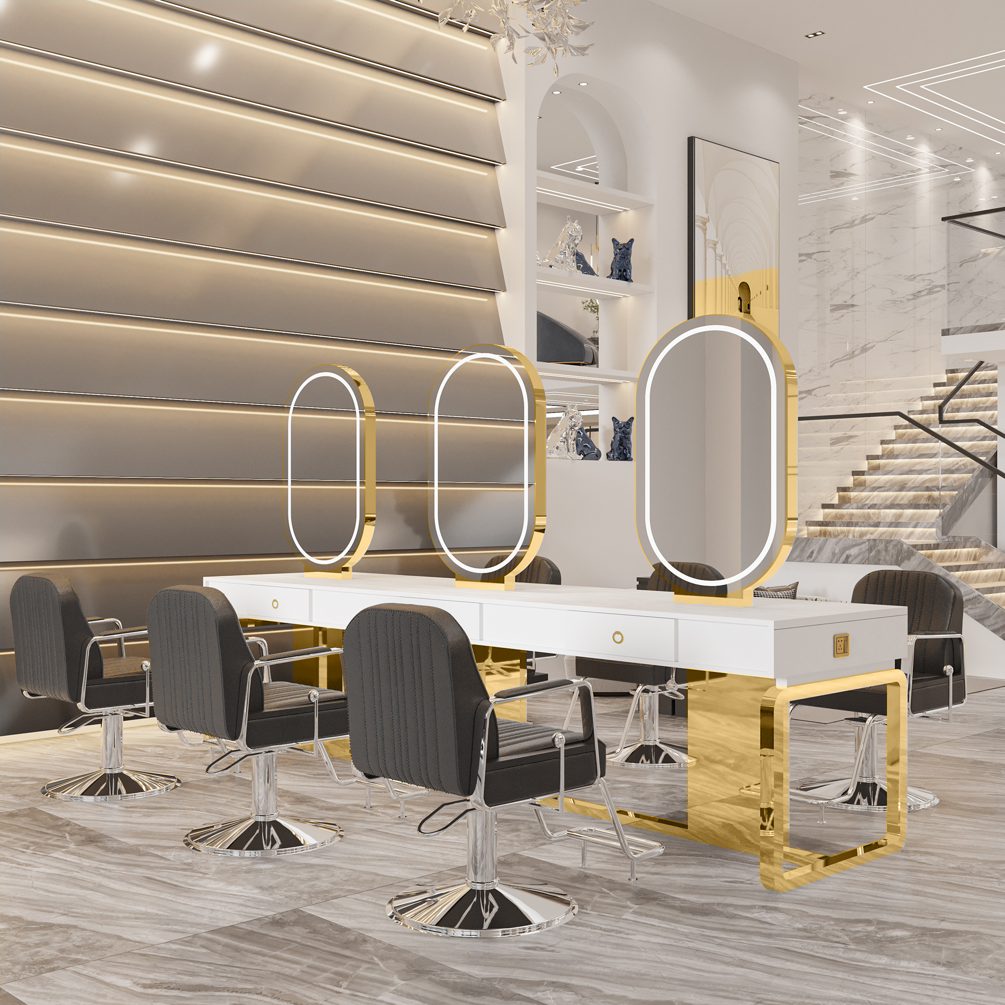 Hair salon mirror table barber shop hair salon special hairdressing mirror internet celebrity with light high-end hair cutting mirror trendy hairdressing mirror