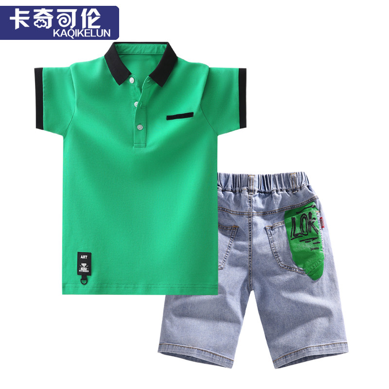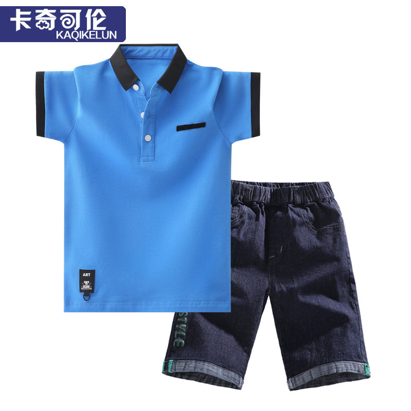 Boy Summer Clothing Suit CUHK Boy 2022 New Foreign Pie Children Short Sleeve Polo Jersey Boy Summer Clothes Trend