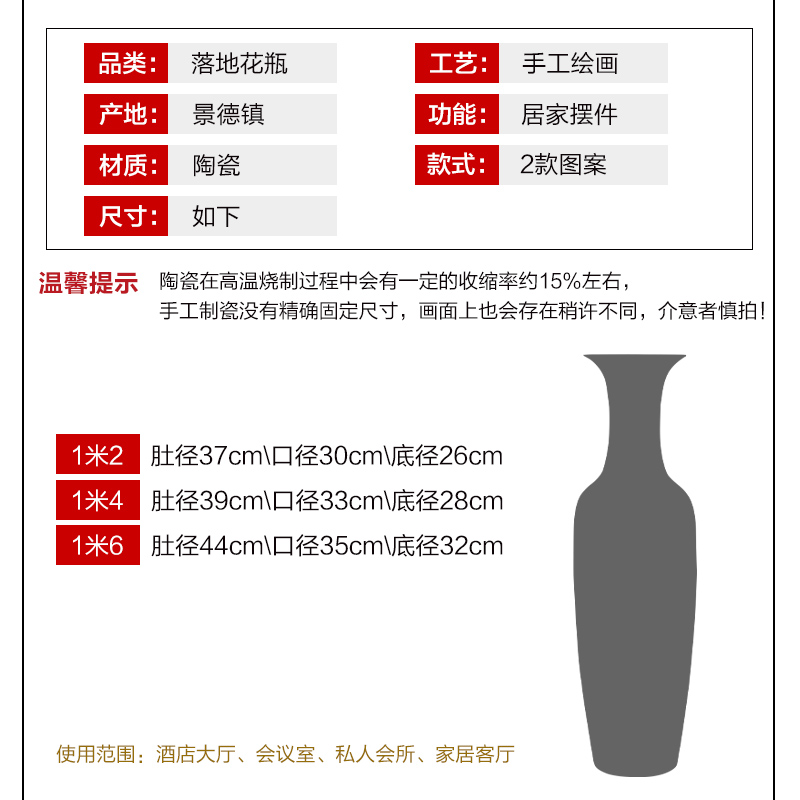 Jingdezhen ceramics Hongyun when the head of the flower blossom rich landed large vase hotel living room ornament ornaments large number