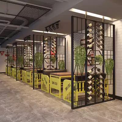Industrial style dining room wine rack Bar decoration rack Cafe card seat partition wrought iron screen red wine rack Red wine rack