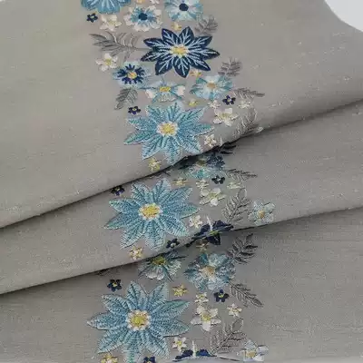 Luo Sing Ding Hanfu gray-blue embroidery lace clothing accessories DIY Hanfu collar skirt waist material