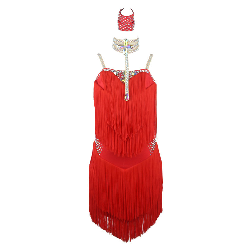 Children's Latin dance competition clothes diamond-encrusted girls' rumba tassel skirt performance clothes sling cha-cha performance clothes flower clothes
