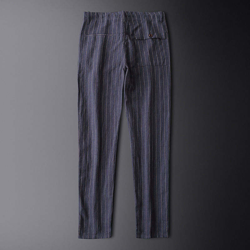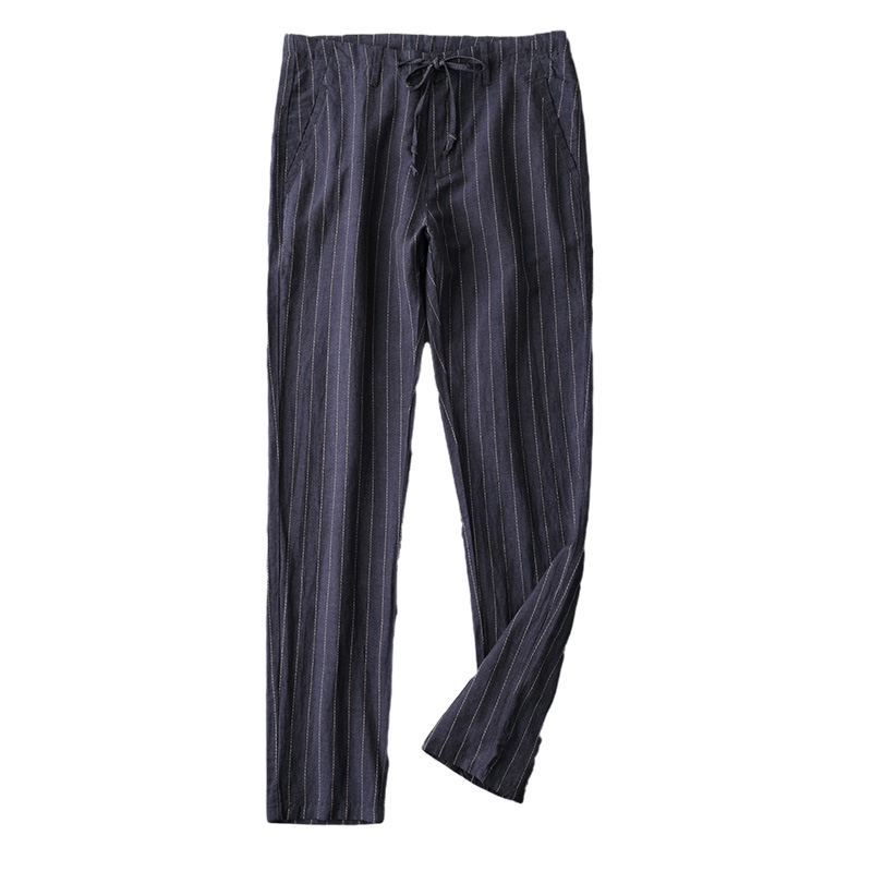 Classic Stripe Thin style Breathable Linen Men Long Pants Youth Casual Comfort Cotton Linen Casual Pants Jumpsuit Pants E
