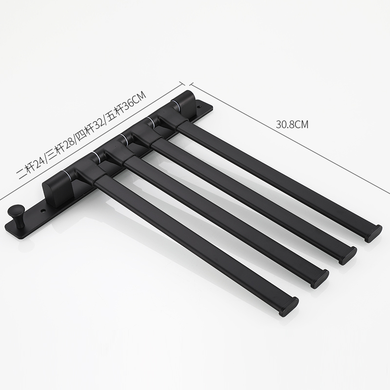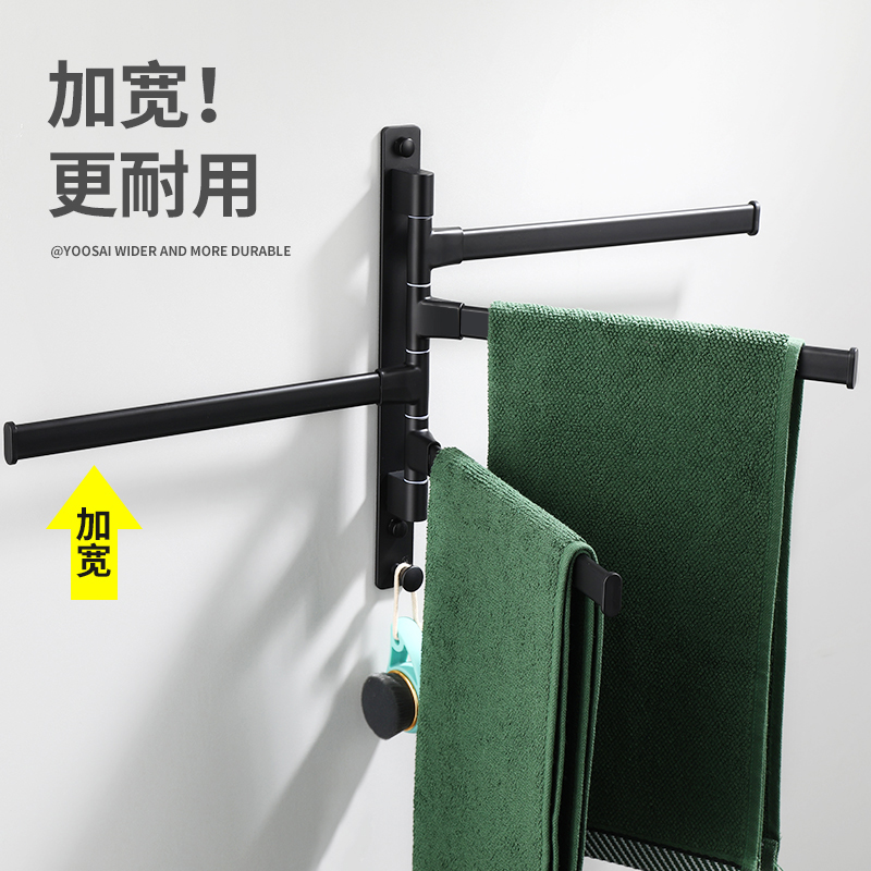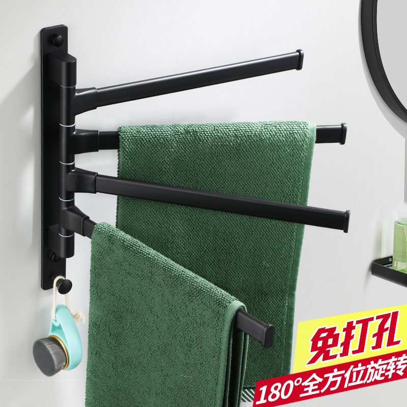 Towel Rack Free of perforated Bathrooms Contained Hanging Rack rotatable Multi-lever Hanging Rod Black Space Aluminum Wall Shelf