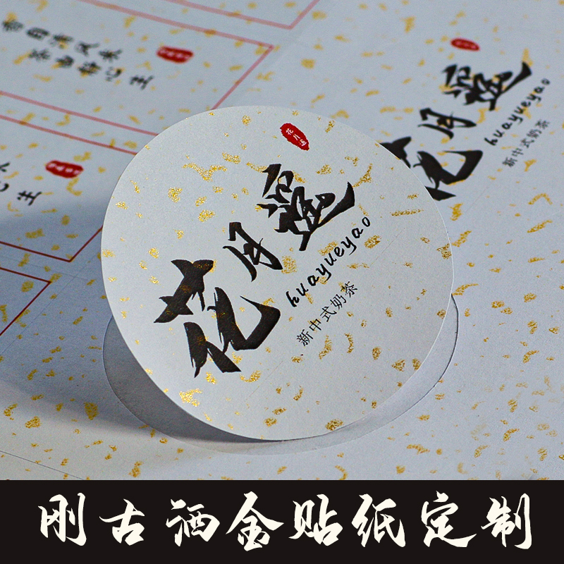 White bottom sprinkle gold sticker tea honey packaging adhesive sticker set for custom making label logo design printing