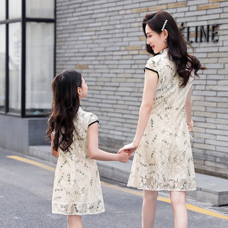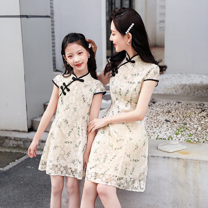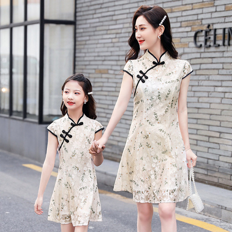 Parent-child cheongsam improved dress ethnic style mother and daughter dress small summer 2020 new trendy temperament Western style