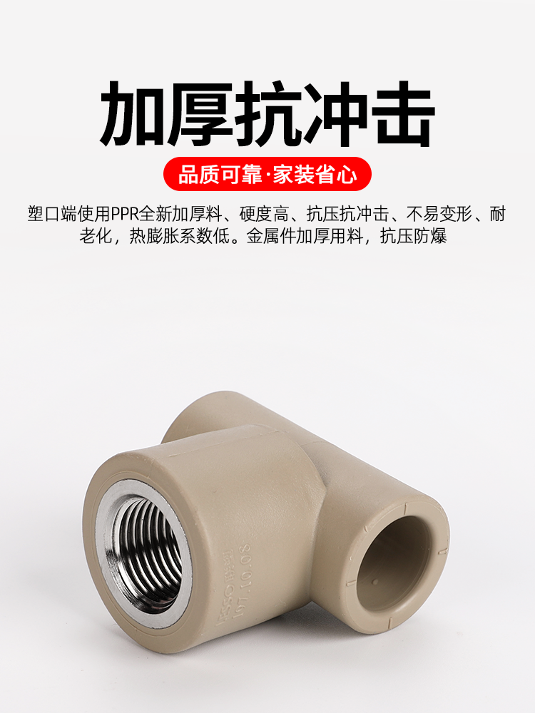 Liansu ppr inner wire tee 20 Hot melt pipe fittings joint 6 points to 4 points Copper inner tooth tee 32 reducer 25