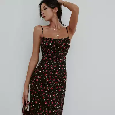 ITSNIKAR French vintage floral dress women 2021 new print sling dress slim slim skirt