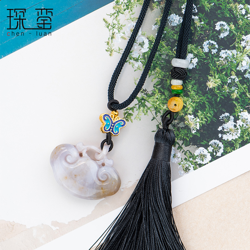 Coral Jade Green Lock Pendant Female Chrysanthemum Stone Raw Stone Jade Pependant Pendant Ice Seed Jade jade Jade Pendant natural crystal Crystal Ornament Necklace