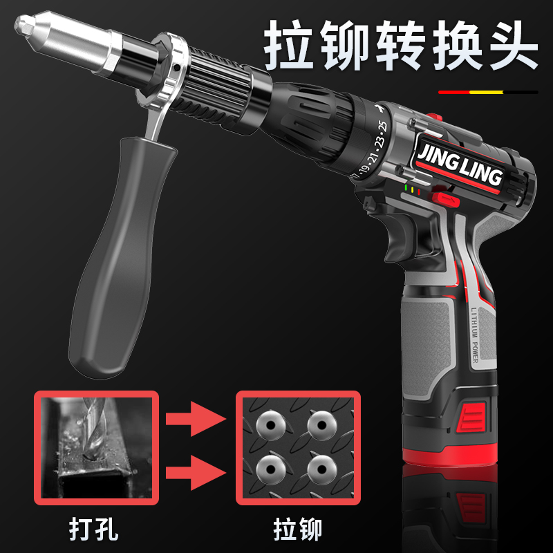 Electric rivet gun head changeover head riveting nail machine electric drill edge rivet gun nut gun pneumatic core pulling machine pull rivet gun