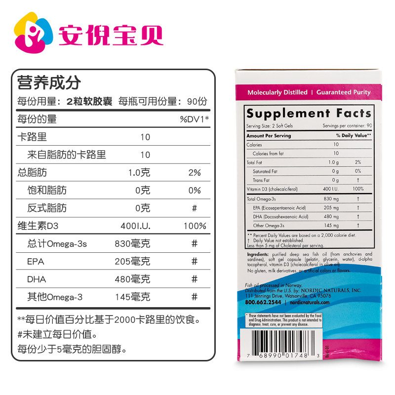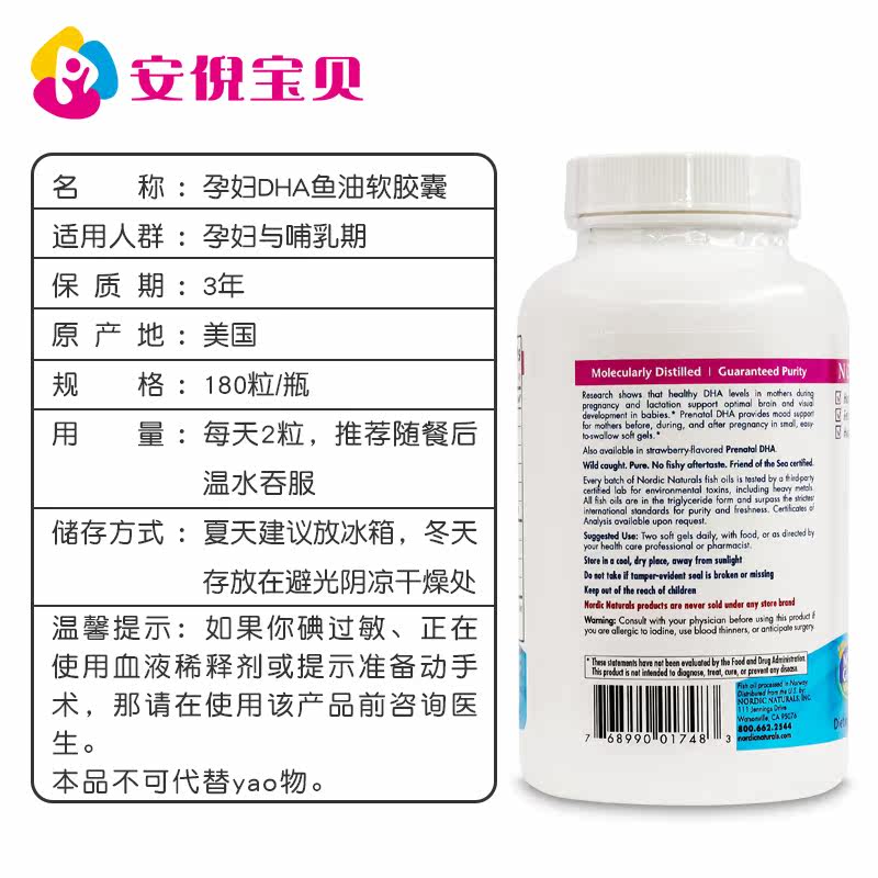 American imported Nordic Naturals Norwegian small fish pregnant and lactating DHA cod oil capsules 180 capsules