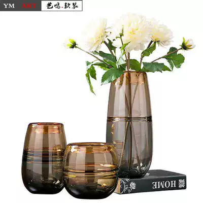 Yiming soft suit American modern colored glass vase living room dining room hydroponic flower arrangement two-color transparent flower arrangement