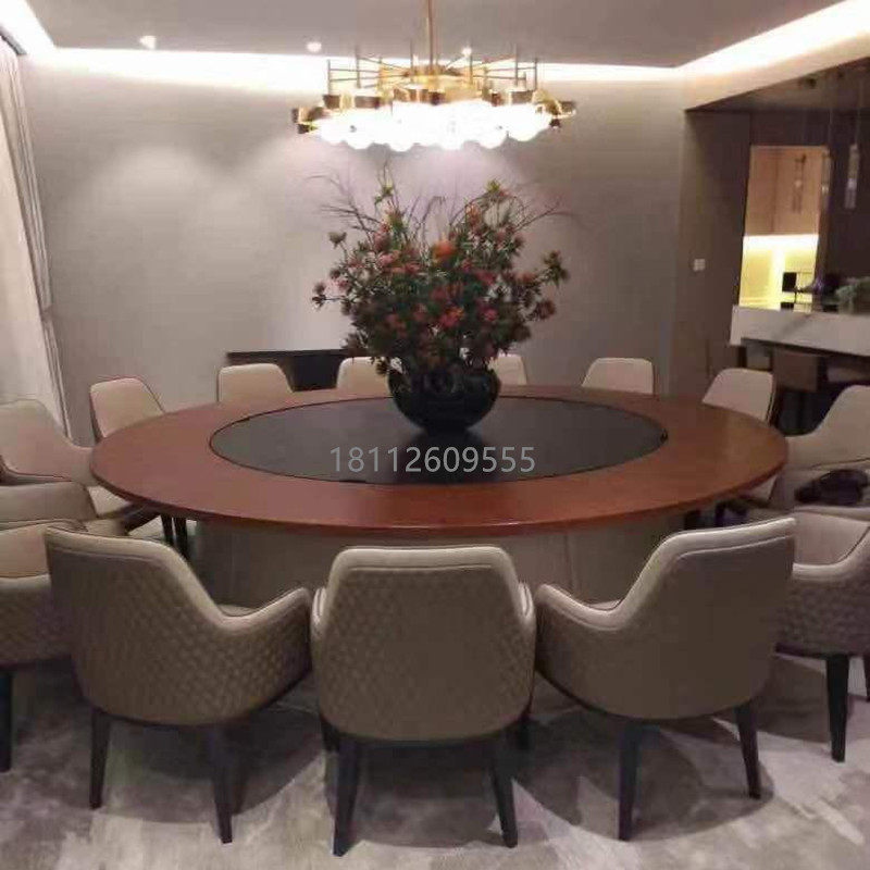 New Chinese-style hotel multi-seat electric dining table modern minimalist hot pot table automatic turntable large round table furniture customization