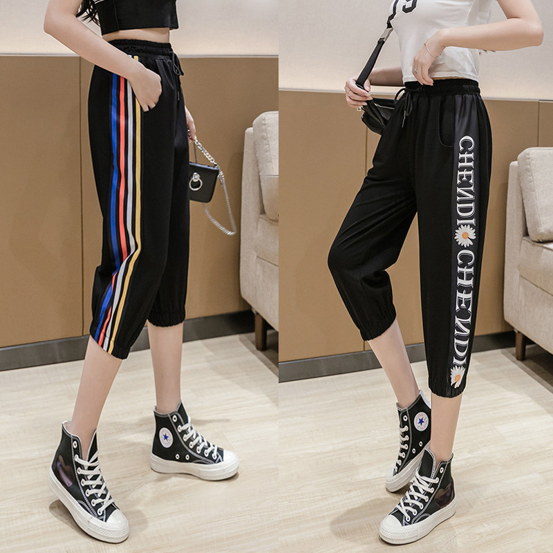 Black QK14 Blue heart Peach 3/4 PANTS BLACK QK13CHENDI CHRYSANTHEMUM 3/4 PANTS BLACK QK11 Vertical CHRYSANTHEMUM 3/4 pants BLACK QK12 blue orange white 3/4 pants 1685