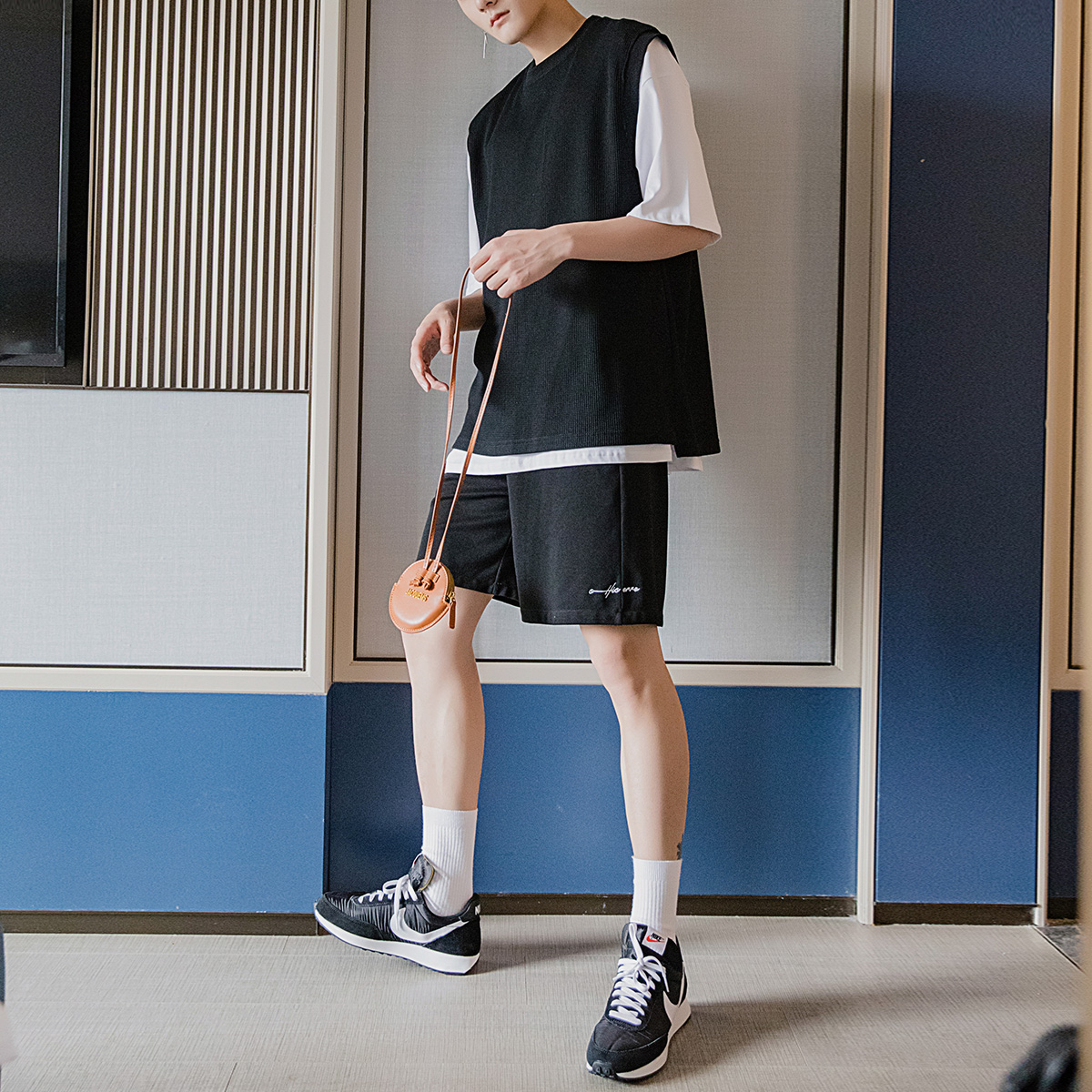 Chichirao embroidery 50% pants male Korean version trendy loose straight drum men's black casual shorts