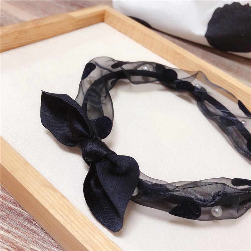 Black lace pearl headband headband female wild go out in summer cute outside wearing net red hairpin vibrato with the same style