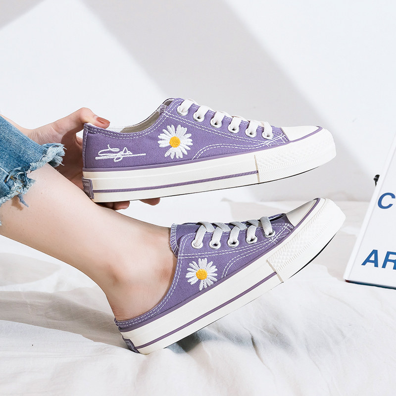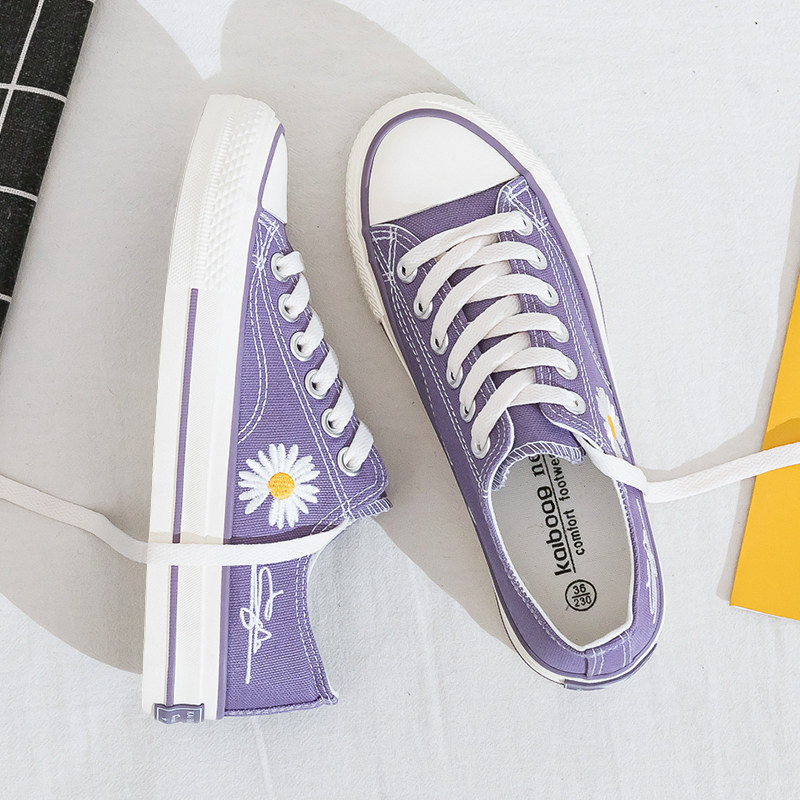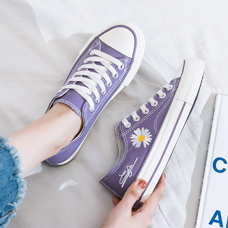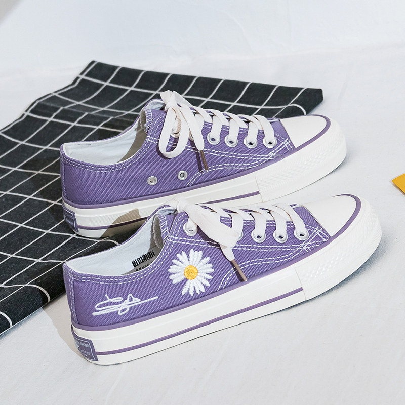 Purple daisy canvas shoes women's shoes 2022 summer new casual cloth shoes all-match Korean low-top small white board shoes
