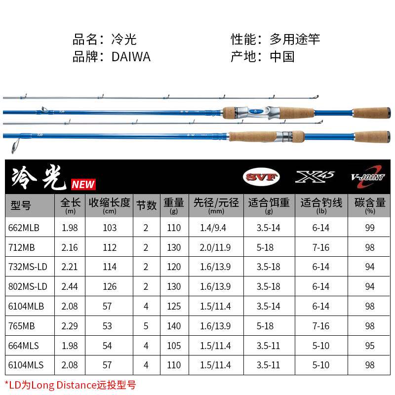 DAIWA Daihe 20 new cold light long - drop carbon coat bass freshwater fishing rod rod