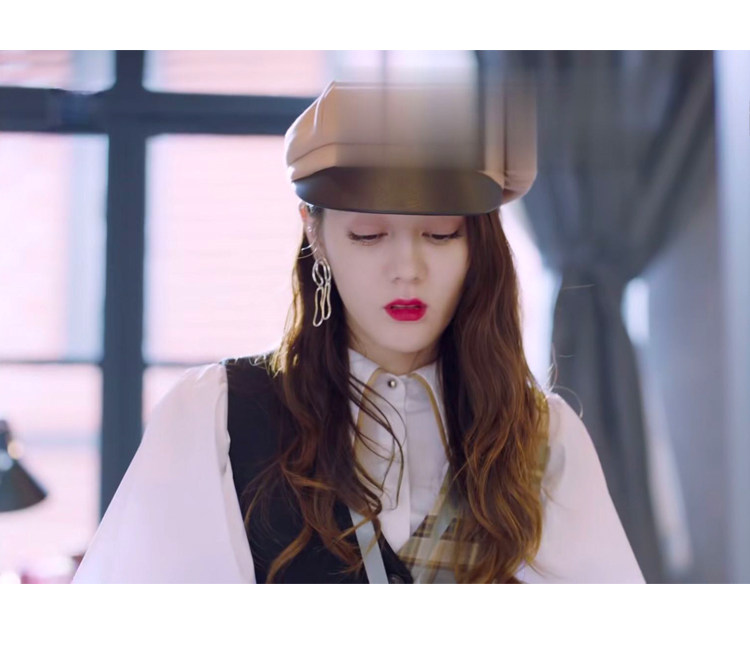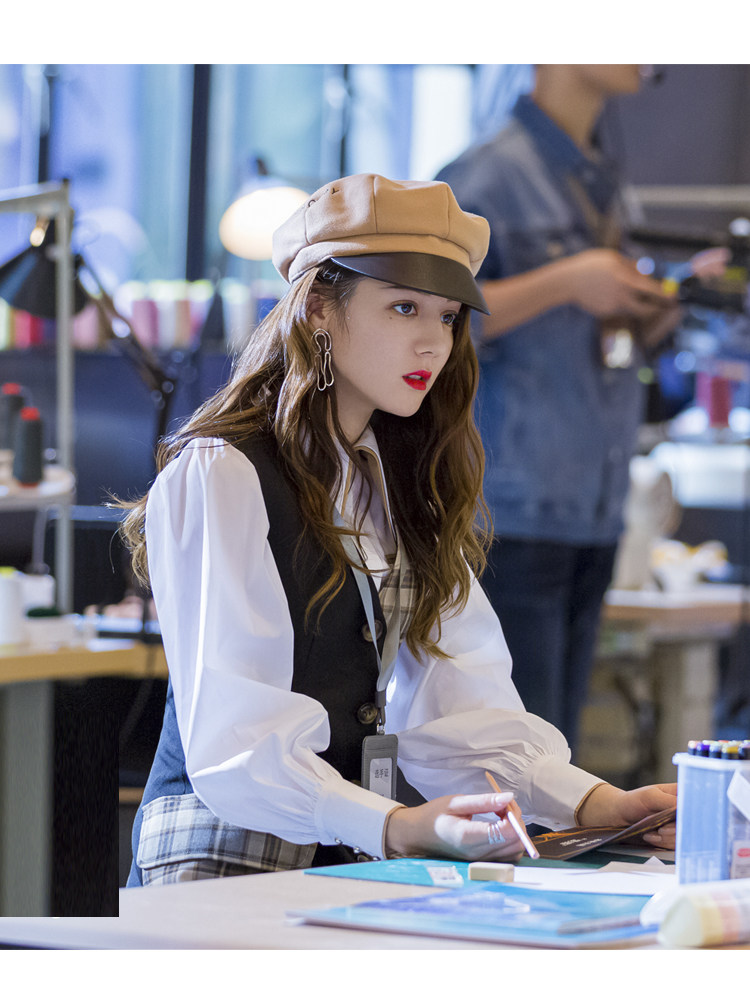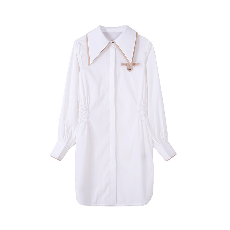 Happiness at your fingertips Dili Hotba Zhou Fang the same white shirt female design niche lantern sleeve square collar top