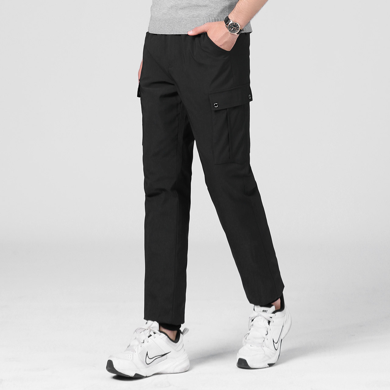 Snow middle flying autumn winter brief approachable pure color black thickening easy lap fashion large bag men style tooling warm down trousers