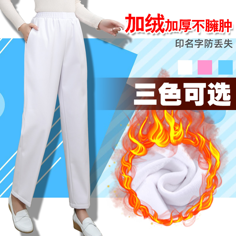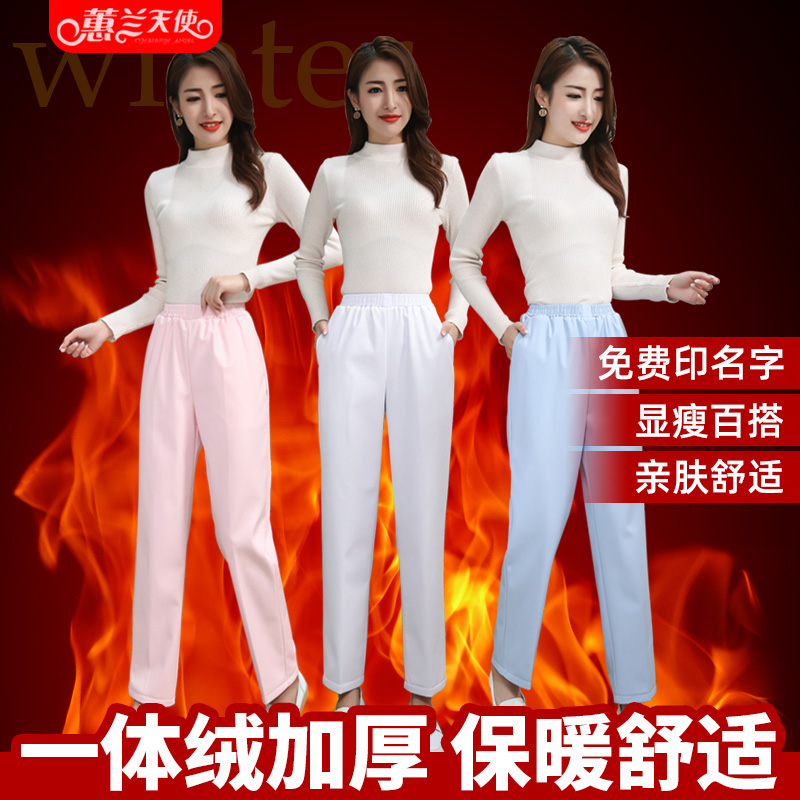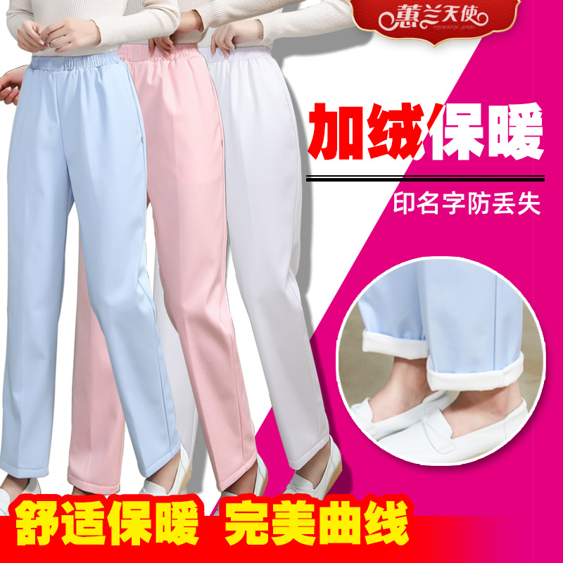 Cymbidium Angel Velvet Nurse Pants Winter Elastic Waist Work Pants Slim Beauty Pants White Thickened Doctor Pants