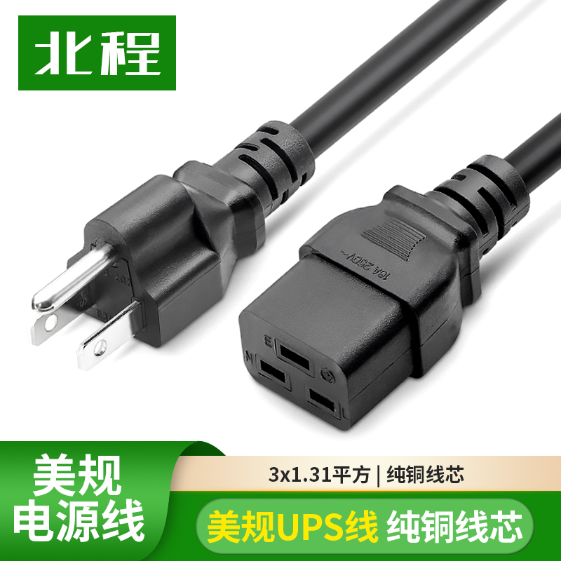 U.S. UPS power cord server PDUAmerican power cord 10A to 16A plug high power C19 three-hole 3-core