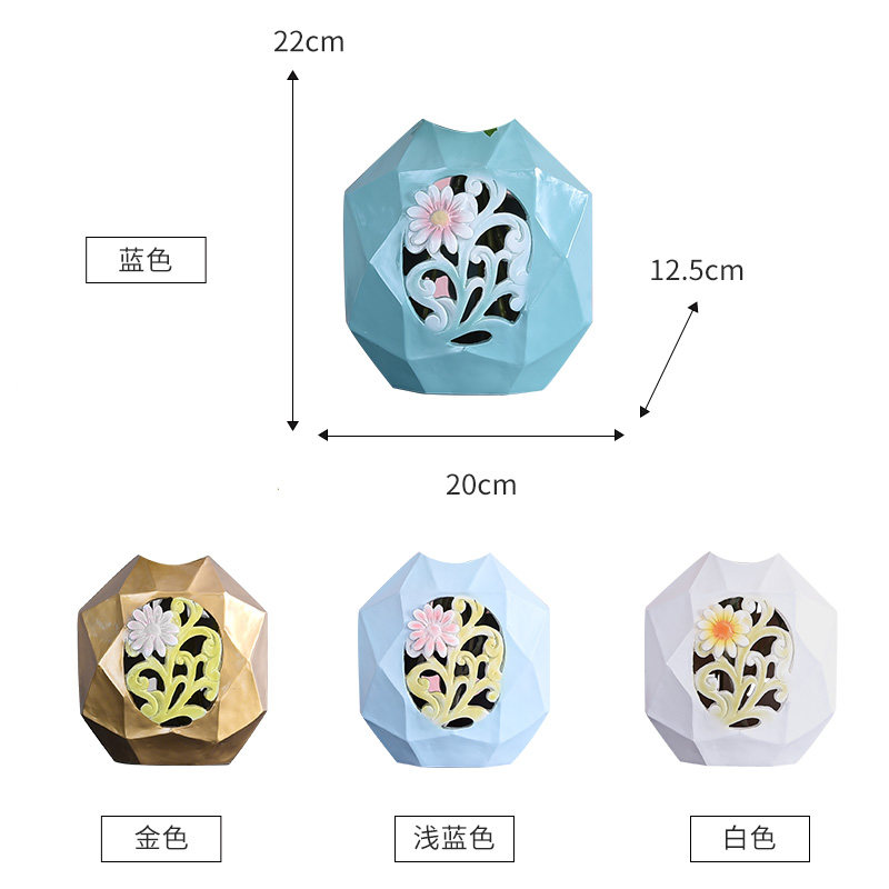 Polygonal creative geometric vase set Light luxury vase ornaments Living room flower arrangement Dried flower decorations Dining room decoration