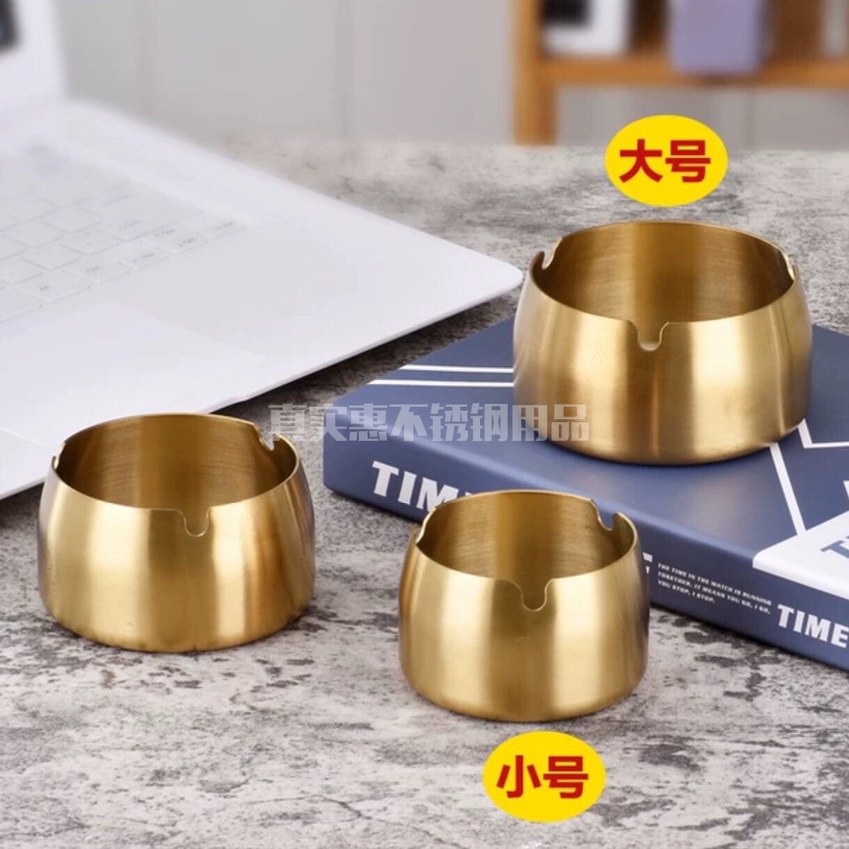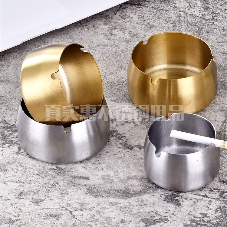 Thickened stainless steel ashtray Dining room hotel Internet cafe drop-proof large capacity gold smoke plate creative custom LOGO