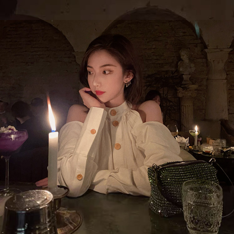 2020the new white shirt women's design sense small people light familiar French off-the-shoulder long sleeve jacket fairy spirit super fairy