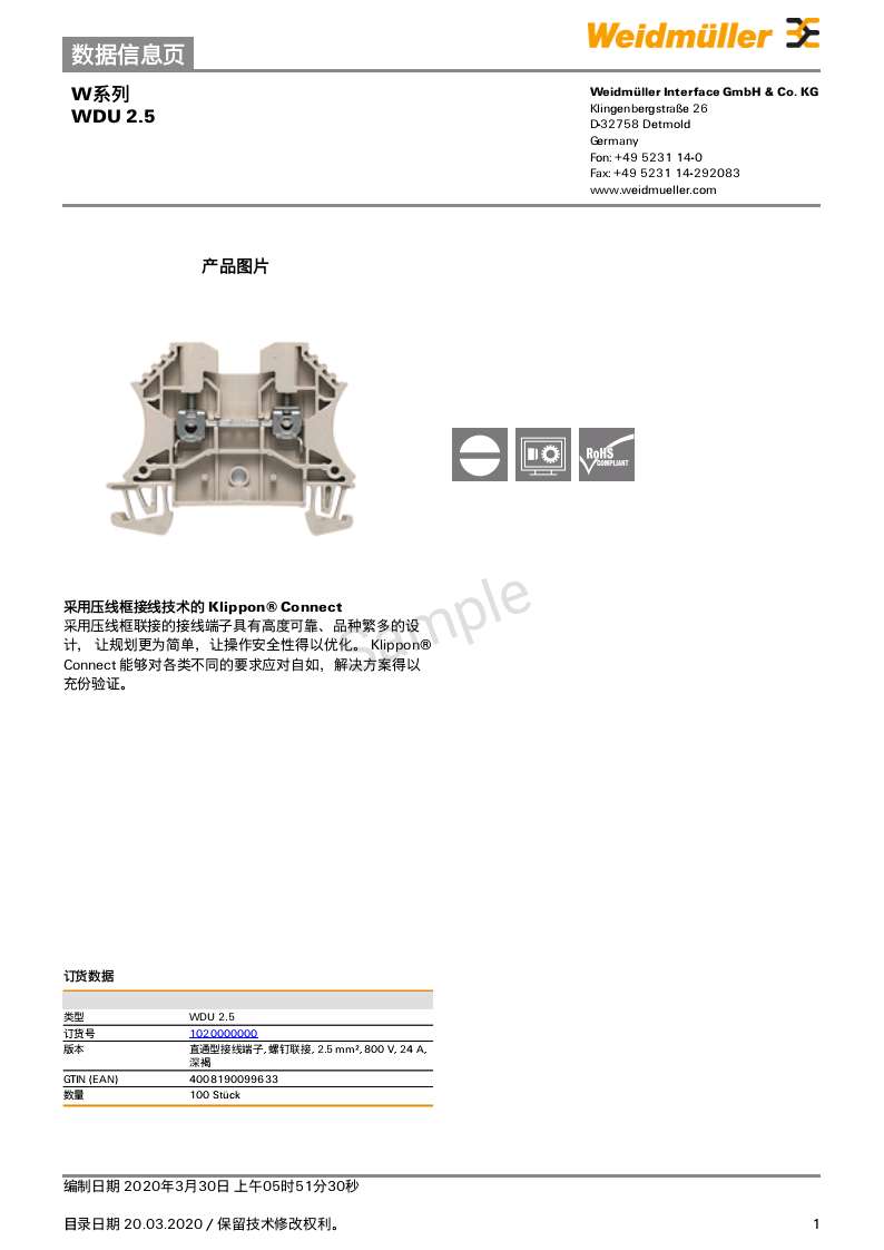 Weidmüller terminal WDU2 5 rail terminal row 1020000000 2 5 square