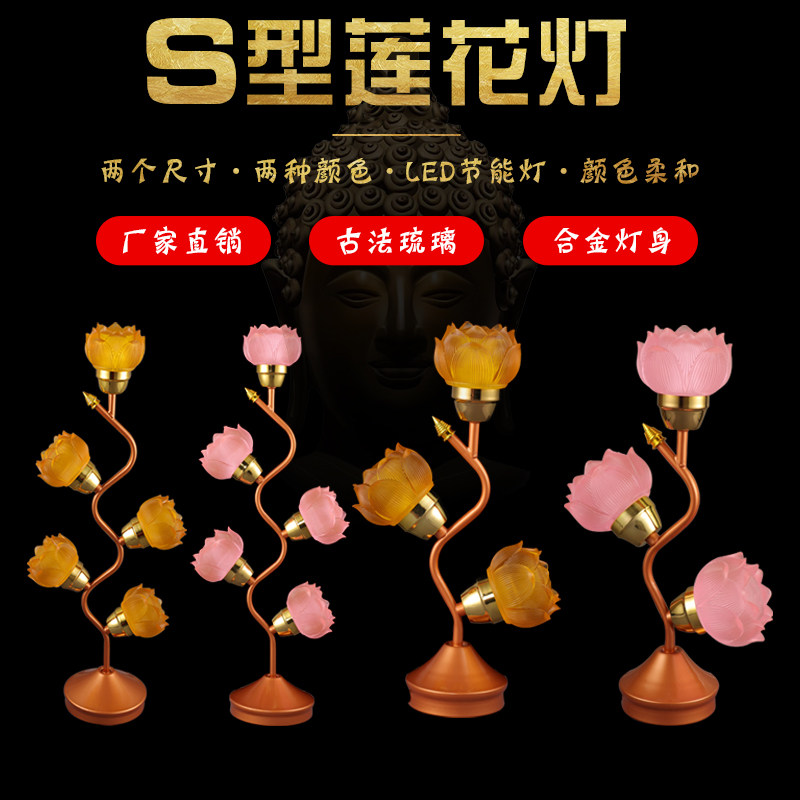 S-shaped lotus lamp Seven colorful discolored led plug-in Electric Guanyin for lamp Changming lamp Three items of seven Lanterns Buddha's Hall of Flights Buddha