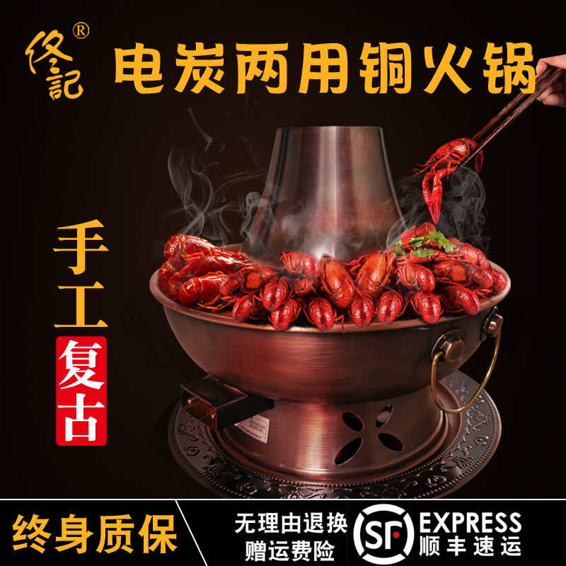 Tong Kee Retro Bronze Hot Pot Pure Red Copper Thickened Domestic Plug-in Wood Charcoal Old Stove Old Beijing Yuanyang Bronze Pot