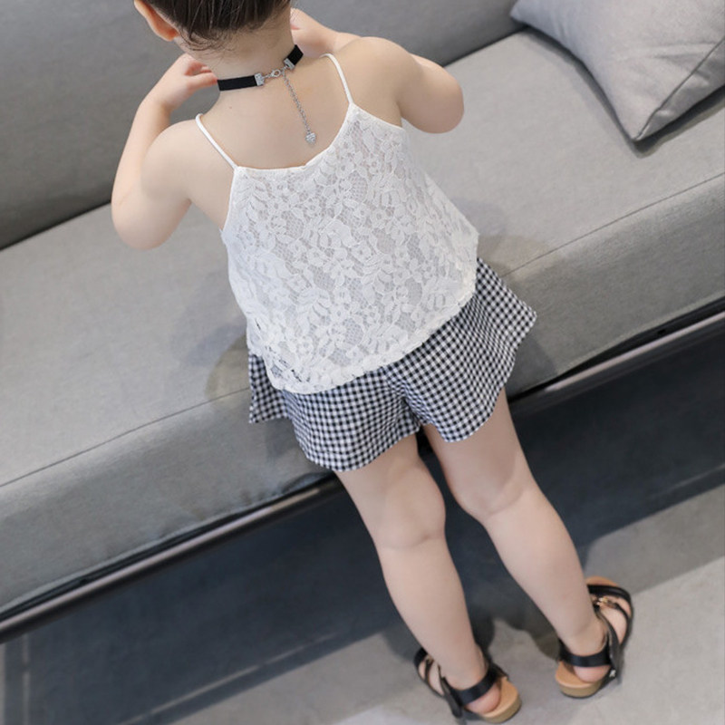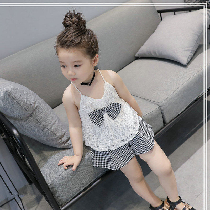 Girl's Summer Suit 2020 New Foreign Pie Trendy Harness Blouse Shorts Shorts Fresh Art Two Sets
