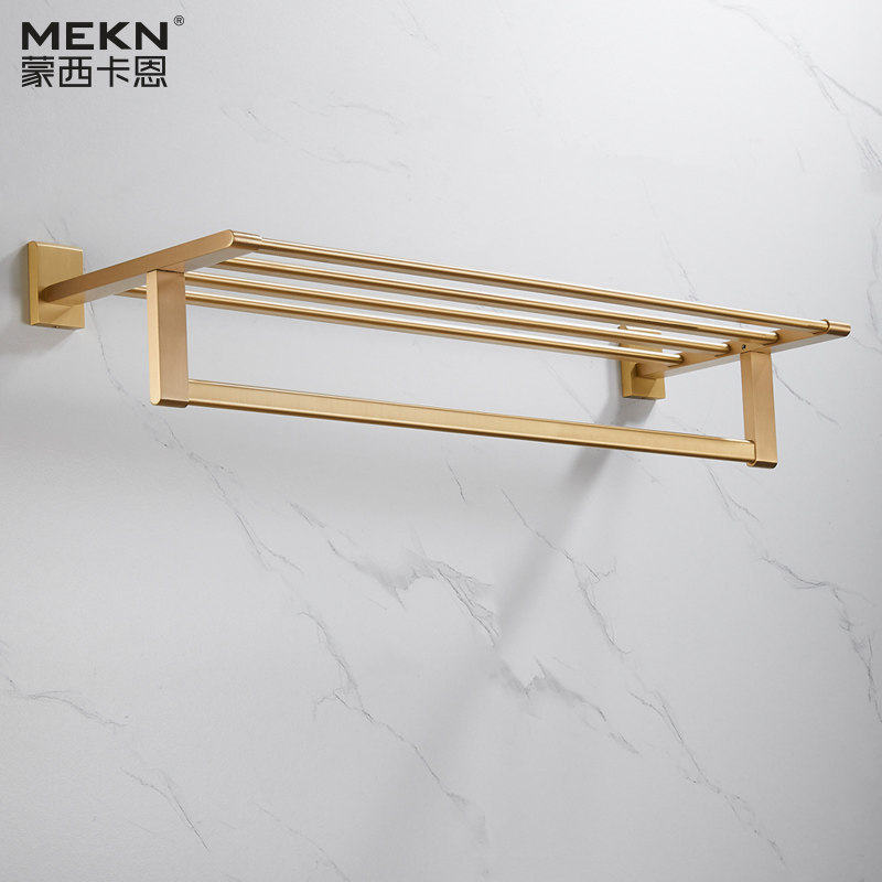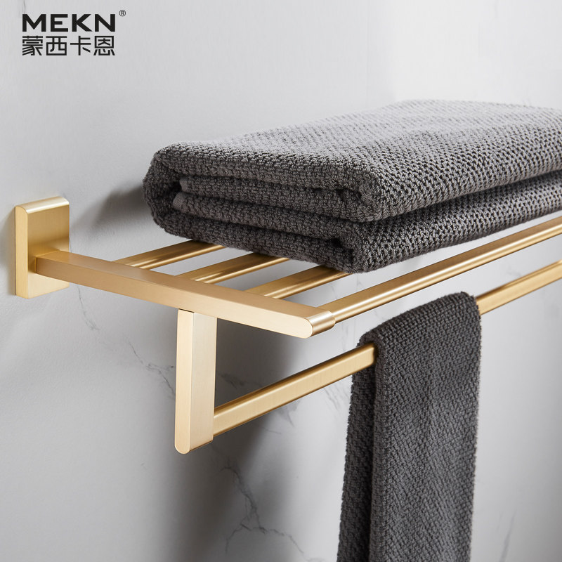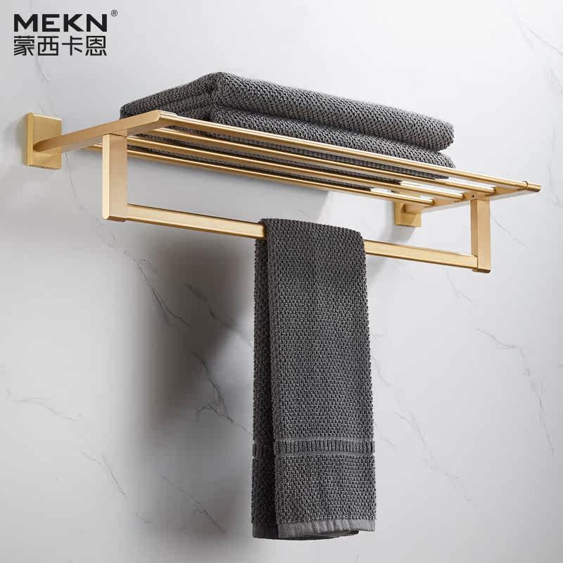 Nordic Light Extravagant Brass Wire Drawing Gold Solid Towel Bath Towel Rack Full Copper Bathroom Hardware Pendant MAKEUP ROOM SHELF