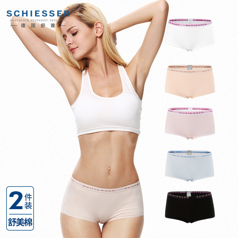 2 Dress Schiesser Shuja Pants Lady Slim Fit Pure Color Cotton Medium Waist Four Corner Pants Breathable Underwear Shorts
