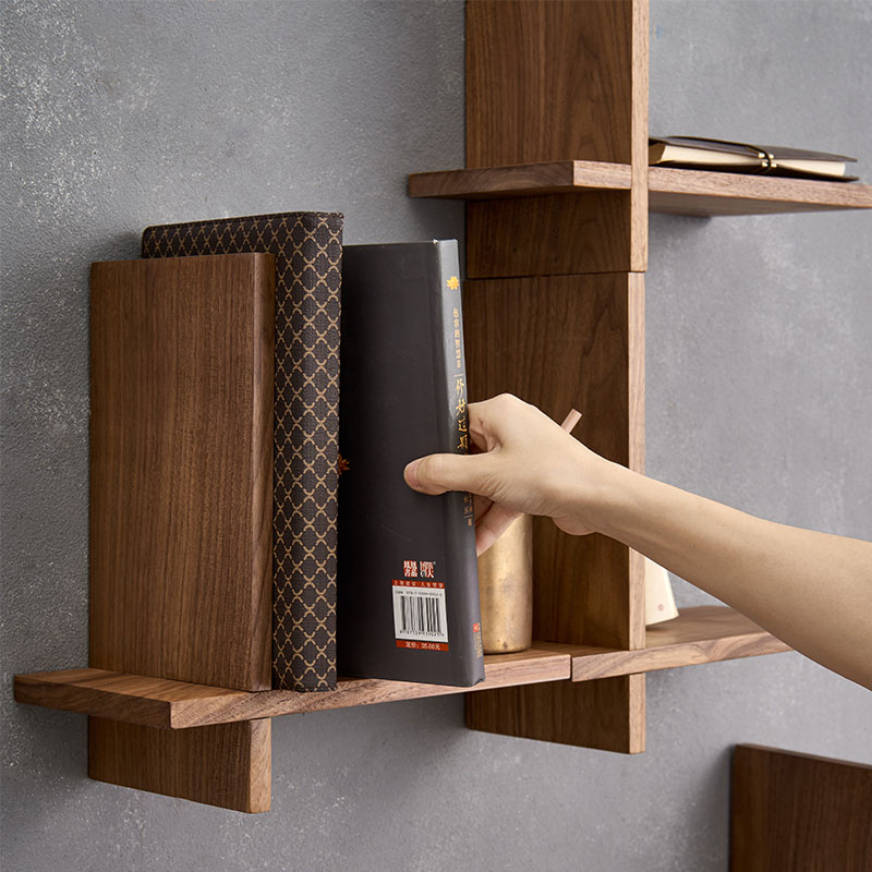Solid wood shelf bedroom decoration clapboard living room TV wall hanging wall hanging cross bookshelf