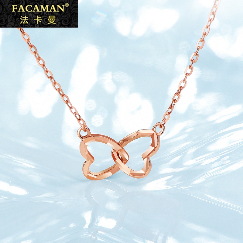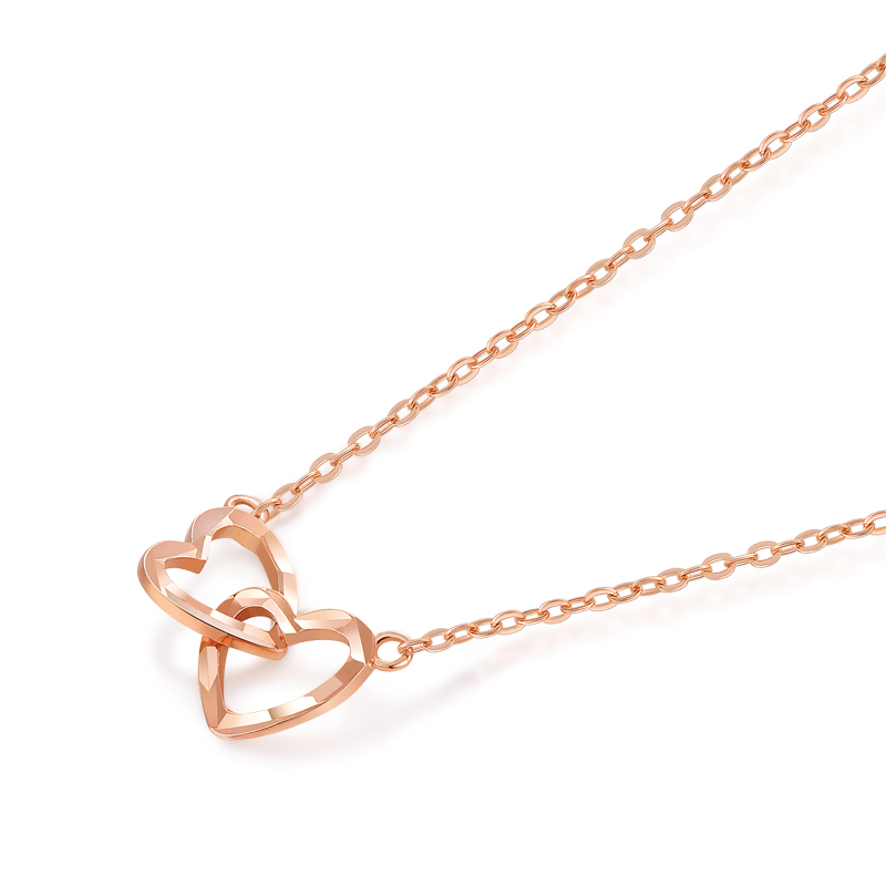 Duobao double heart 18k gold necklace female clavicle chain rose gold color gold simple temperament niche design pendant trend