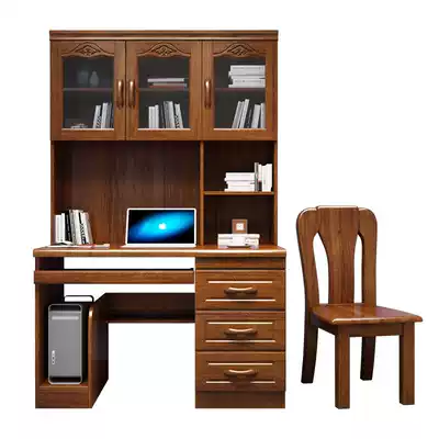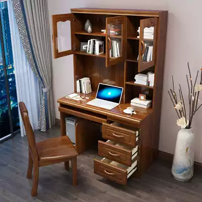 Walnut desk bookcase bookshelf one Chinese home computer desk desk study Full solid wood combination